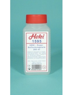 Super Beflockungsleim 200 ml. Eignet sich besonders zum Begrünen von Baumrohlingen mit HEKI flor Art. Nr. 1150-1158 oder zum "supern" von Bäumen mit HEKI Laub Art. Nr. 1560-1568. Der Kleber trocknet nach dem Aushärten farblos aus. Wasserverdünnbar - nicht wasserlöslich.