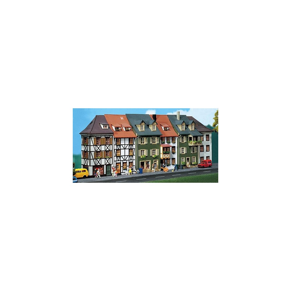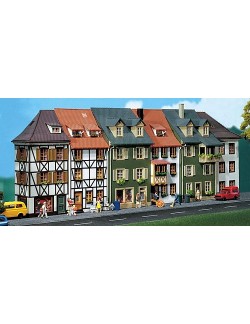 Mit diesen halbiert baubaren Eck- und Wohngebäuden lassen sich kostengünstig und platzsparend Häuserzeilen an den Anlagen-Rückwänden errichten. Mit den Artikeln 130431 und 130432 sind Häuserzeilen-Verlängerungen möglich. Gesamtlänge: 406 mm