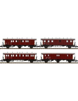 SBB Bauzug-Set bestehend aus je einem Magazin- und Werkzeugwagen und 2 Unterkunftswagen. Passendes Innenbeleuchtungsset. 05.46290